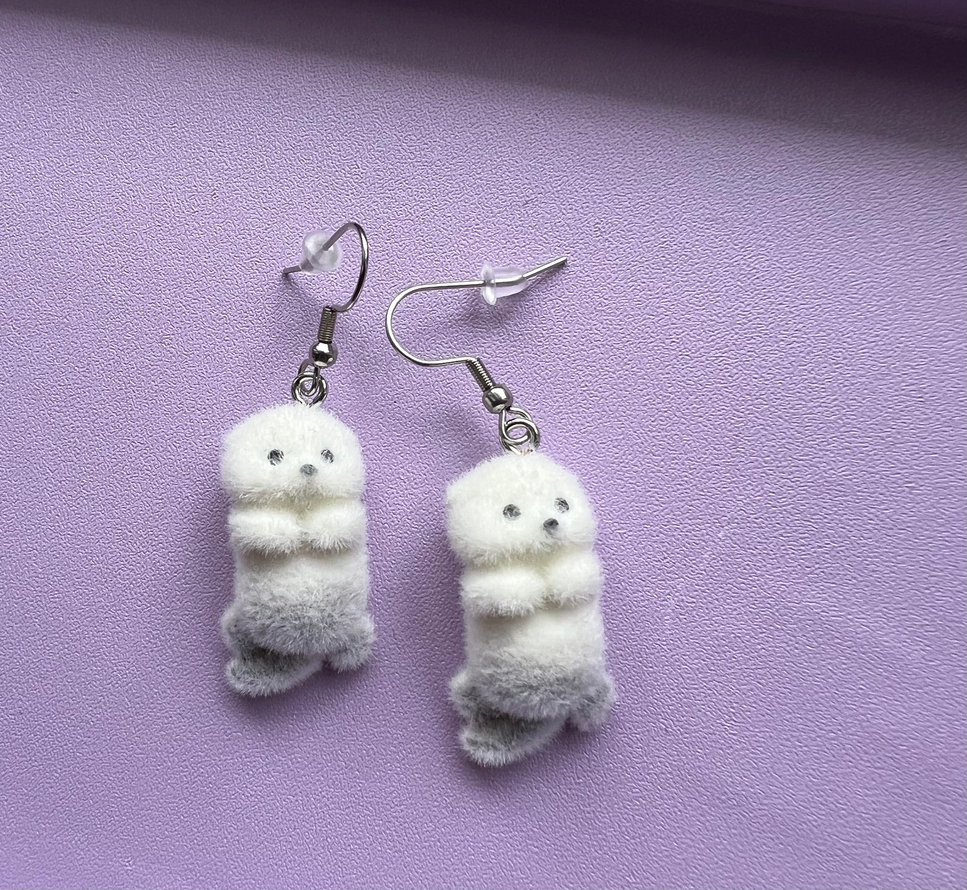 Diese Ohrringe sind ein absoluter Blickfang: Zwei kleine, flauschige Seeotter baumeln verspielt am silberfarbenen Edelstahl Ohrring und verleihen jedem Outfit eine extra Portion Charme. Das weiche Plüsch-Design in Weiß und Grau bringt eine gemütliche, maritime Note mit, während die feinen Details – winzige Augen, niedliche Pfötchen – die Herzen von Tier- und Meeresliebhabern höherschlagen lassen.