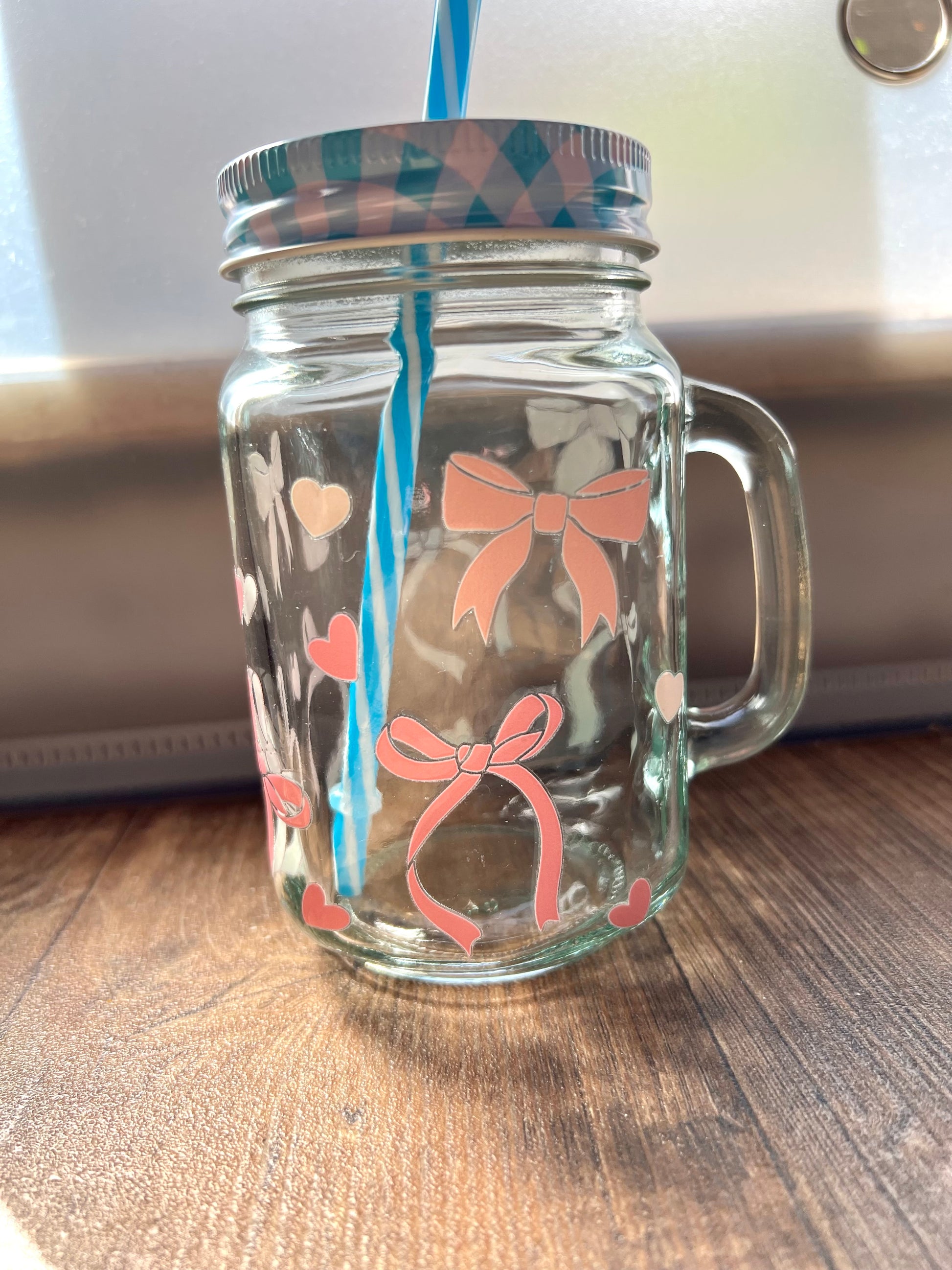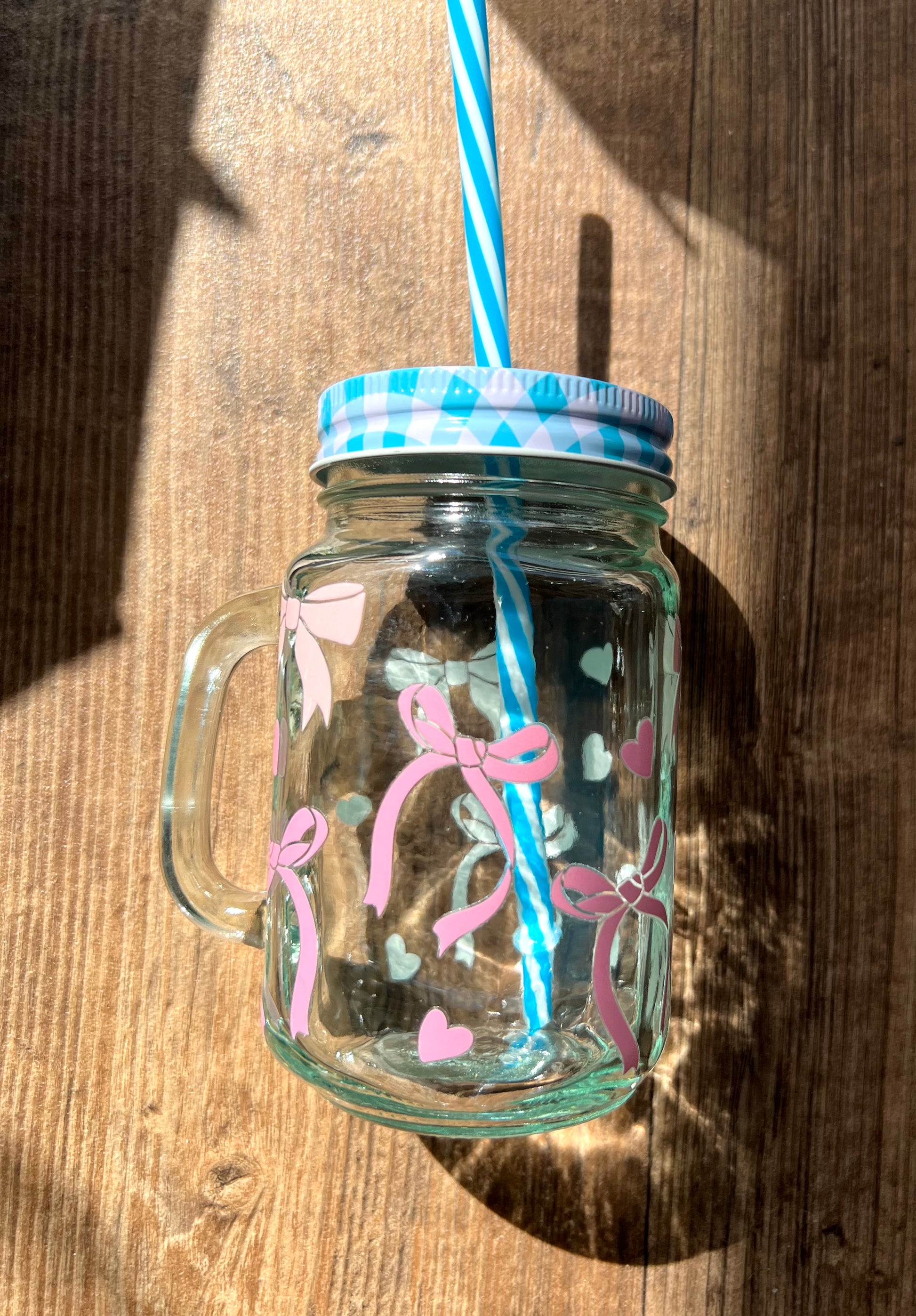 Nachhaltiges Trinkglas 450ml mit Mehrweg-Strohhalm & Schleifen