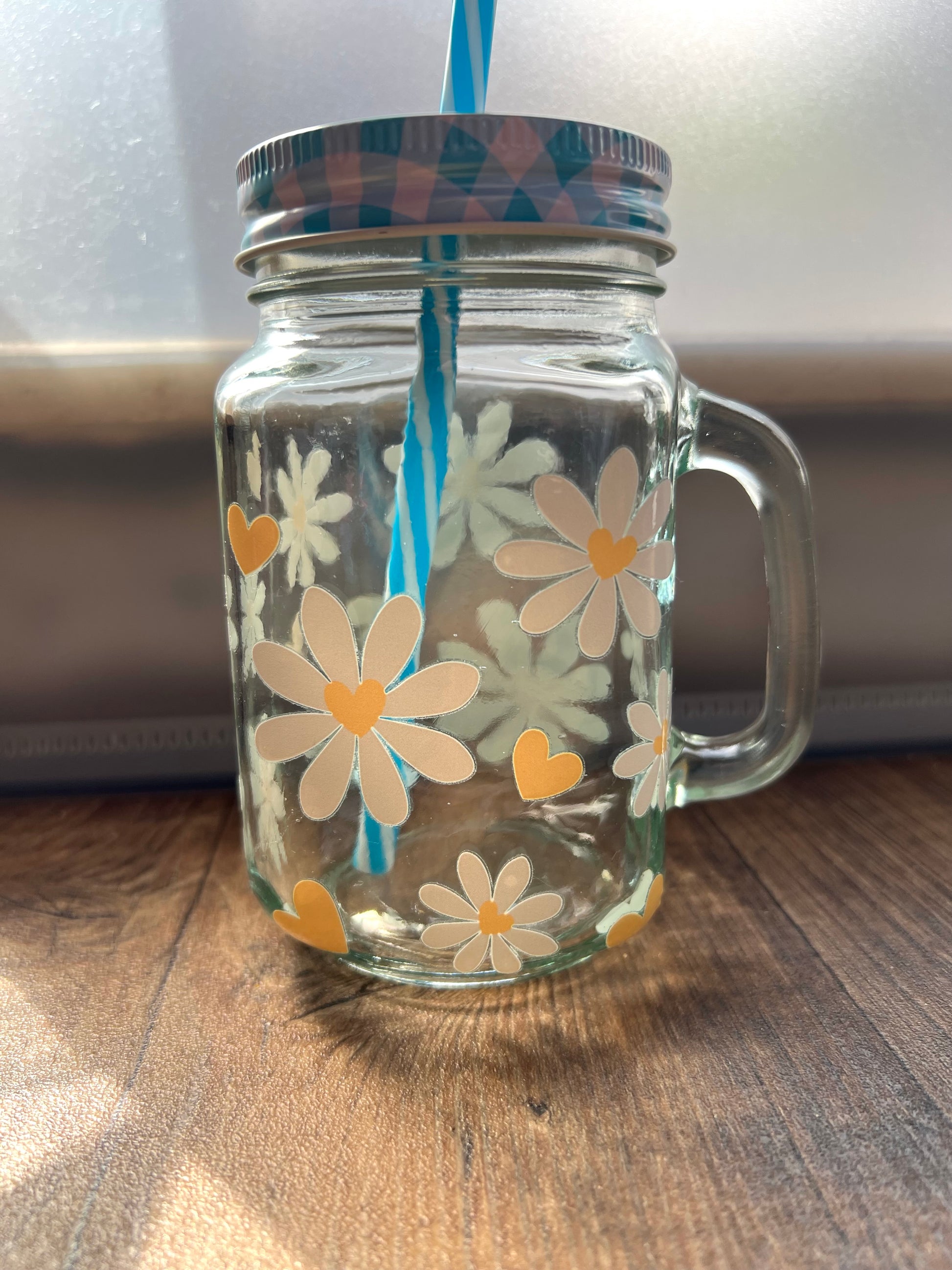 Nachhaltiges Trinkglas 450ml mit Mehrweg-Strohhalm & Blumen