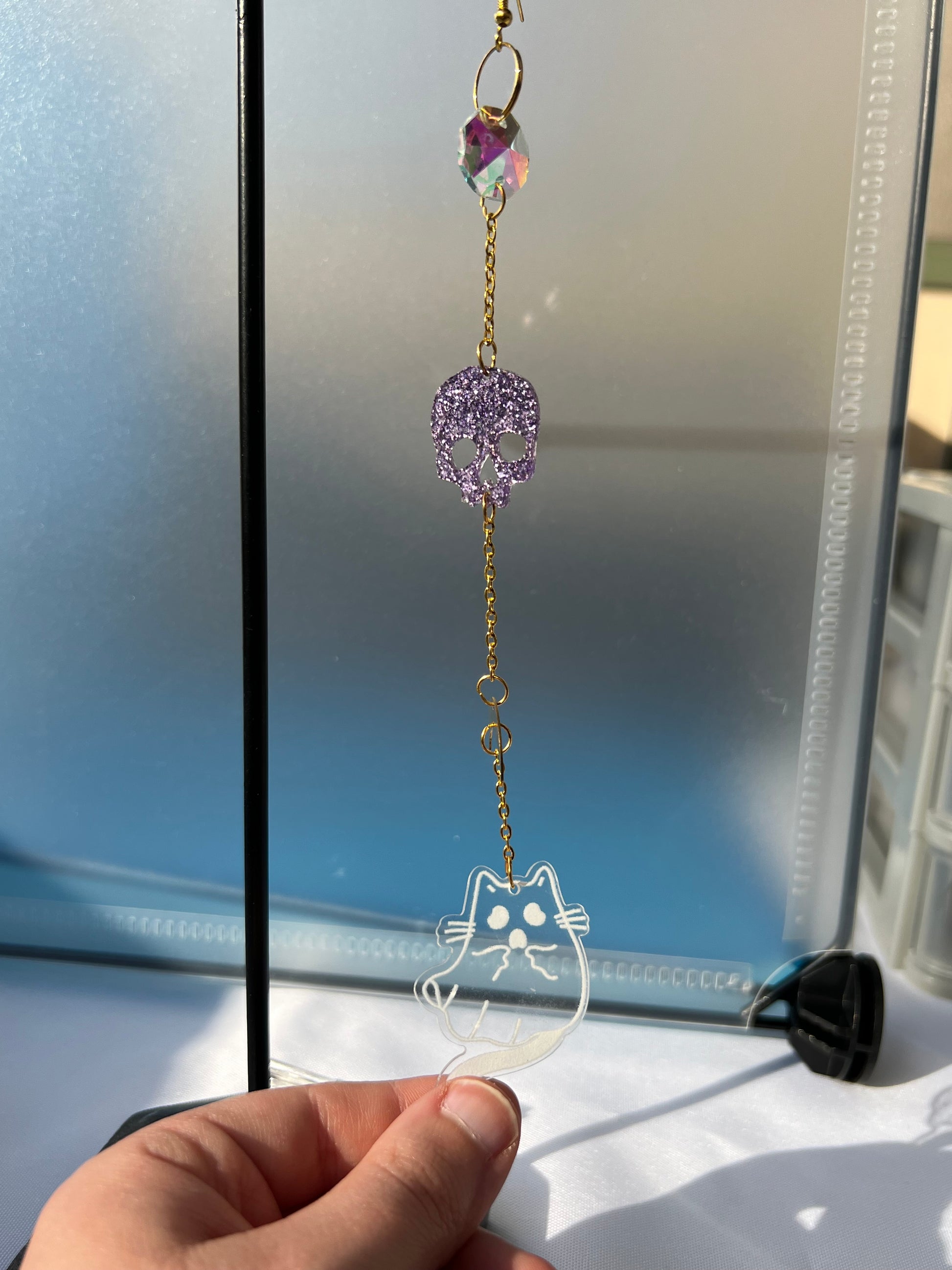 Sonnenfänger kleine Katze mit Glas Stein Skelett
